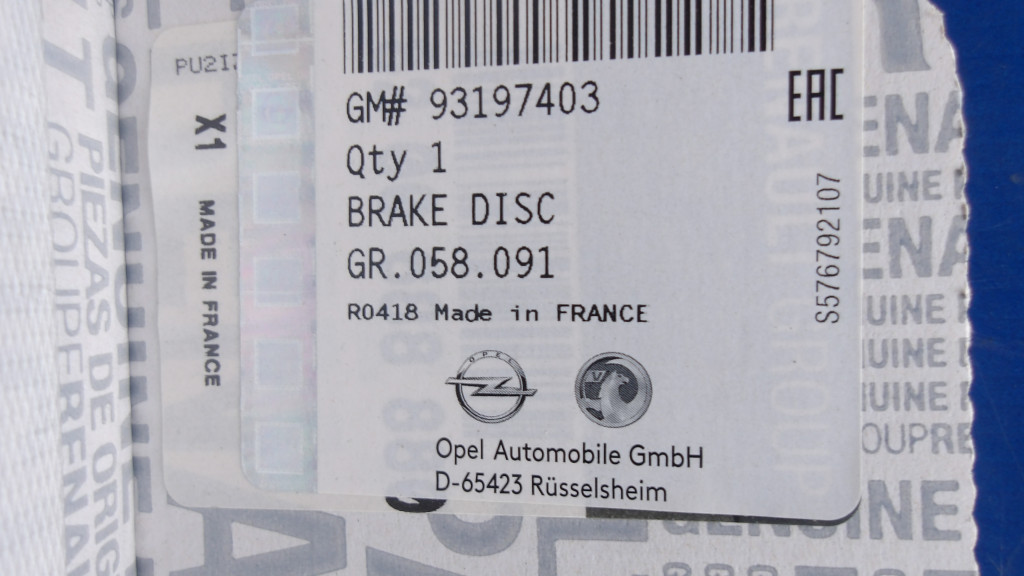 ÁR/DB[GYÁRI ÚJ] OPEL/NISSAN/RENAULT ELSŐ FÉKTÁRCSA FÉKBETÉTTEL 93197403