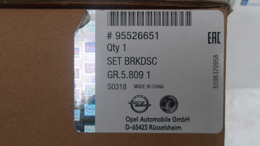 [GYÁRI ÚJ] OPEL TÖBB TIPUSHOZ ELSŐ  FÉKTÁRCSA BETÉTTEL 95526651